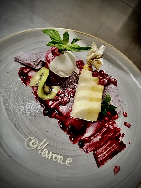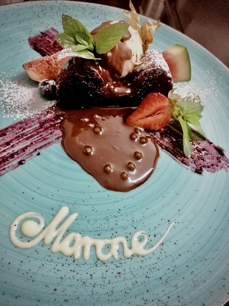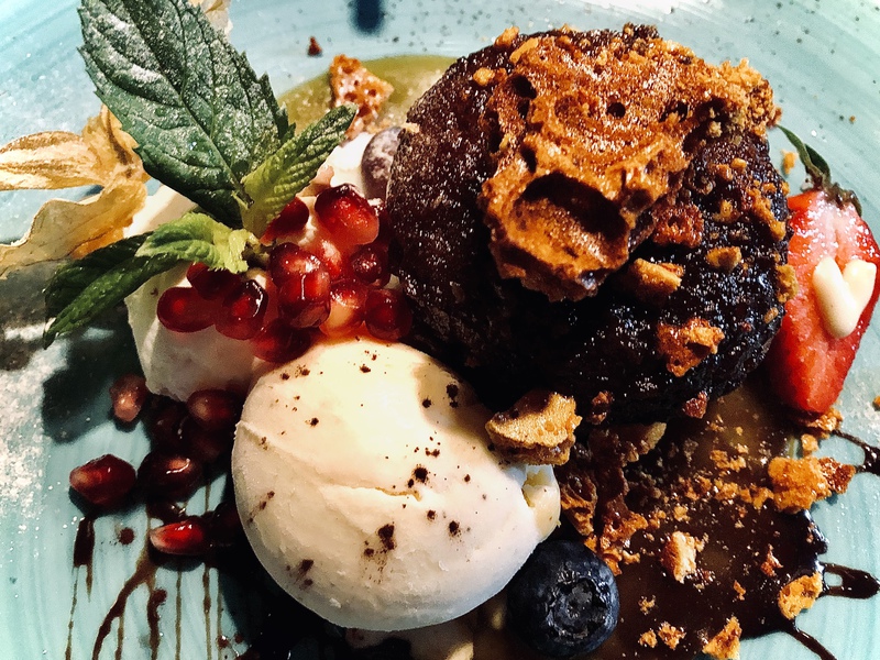 Hausgemachtes Semifreddo halbgefroren mit gerösteten Walnüssen, Mandeln Karamellsoße |