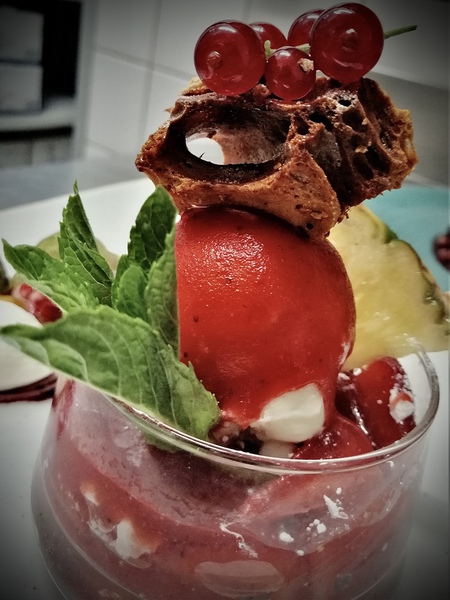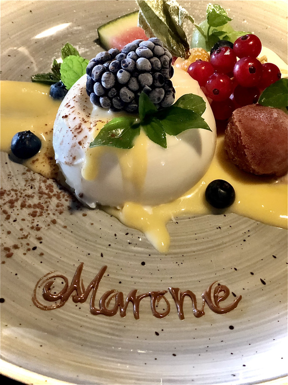 Hausgemachtes Zitronen - Semifreddo mit Himbeersoße |